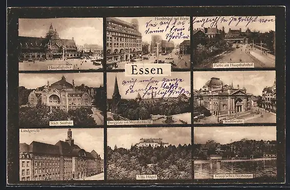 AK Essen, Hauptbahnhof, Stadt-Saalkirche, Krupp`sches Bootshaus