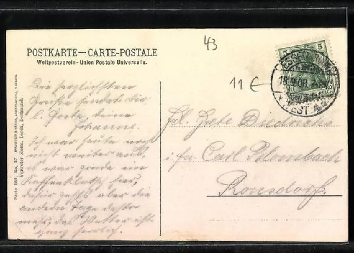 alte Ansichtskarte, gelaufen 1908, guter Zustand