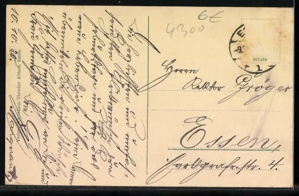alte Ansichtskarte, gelaufen 1920, Briefmarke entfernt, rückseitig Oberflächenschaden, Eckknick li. oben, Albumspuren, minimaler Einriss li. mittig