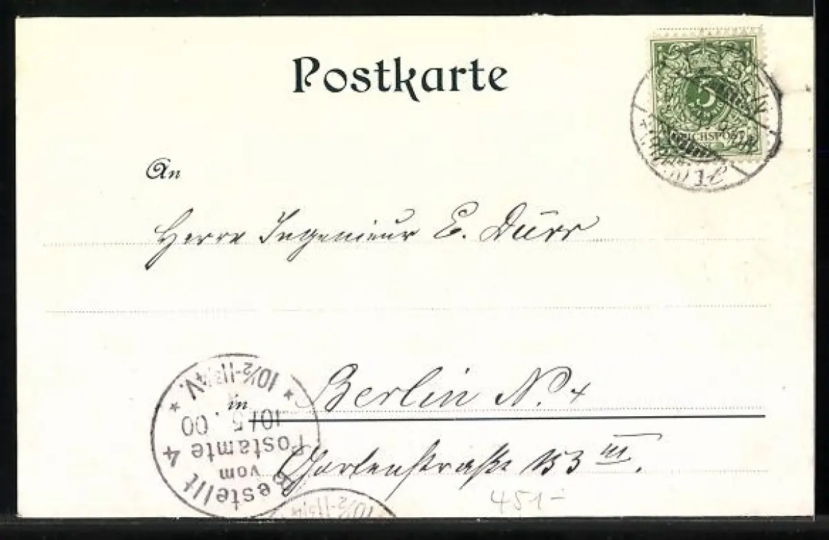 alte Ansichtskarte, gelaufen 1900, guter Zustand