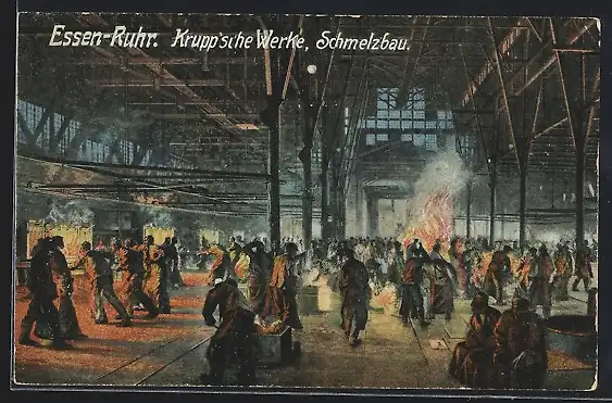 AK Essen /Ruhr, Krupp`sche Werke, Schmelzbau mit Fabrikarbeitern
