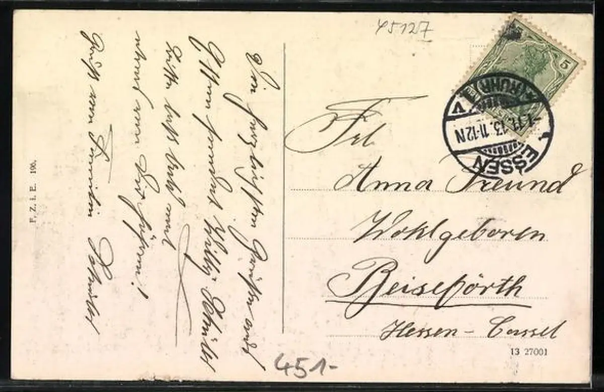 alte Ansichtskarte, gelaufen 1913, Stempelspur, guter Zustand