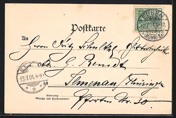 alte Ansichtskarte, gelaufen 1901, guter Zustand