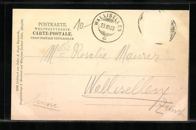 alte Ansichtskarte, gelaufen 1903, Briefmarke entfernt, rückseitig Oberflächenschaden, Albumspuren, guter Zustand