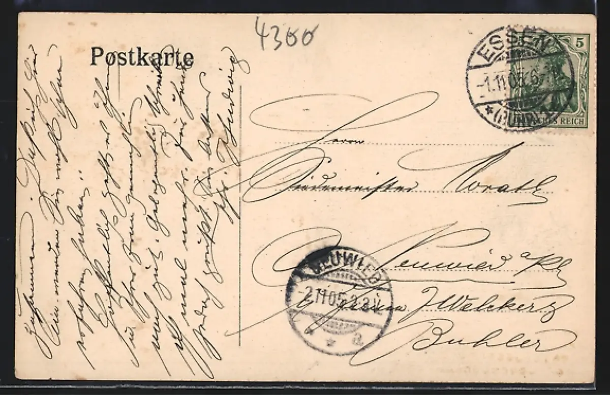 alte Ansichtskarte, gelaufen 1905, Eckknick unten rechts, guter Zustand