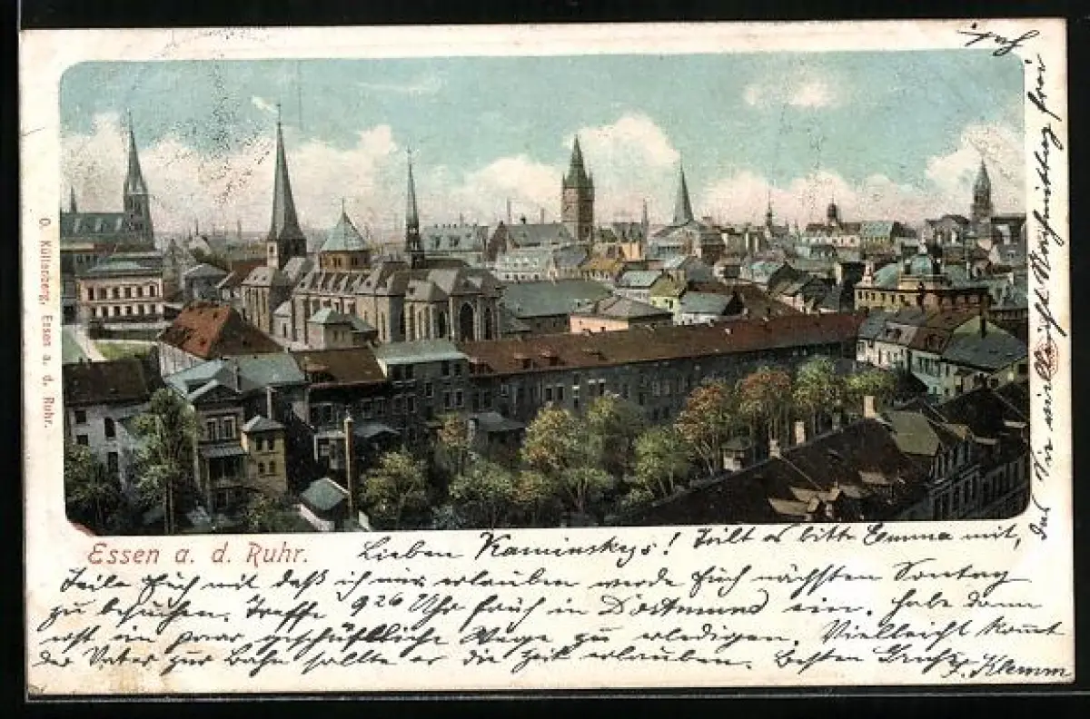 AK Essen a. d. Ruhr, Teilansicht mit Kirche