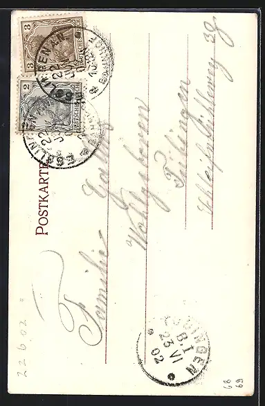 alte Ansichtskarte, gelaufen 1902, Stempelspur, guter Zustand