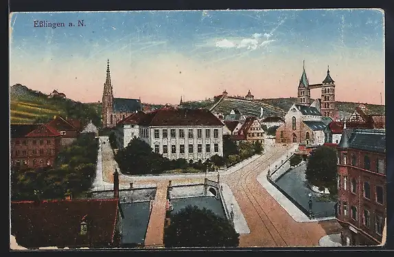 AK Esslingen a. N., Strassenpartie mit Kirche