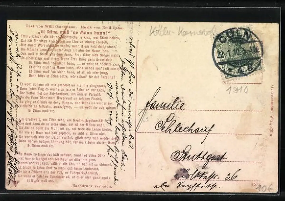 AK Et Stina muss ne Mann hann, Kölner Typen, Humor