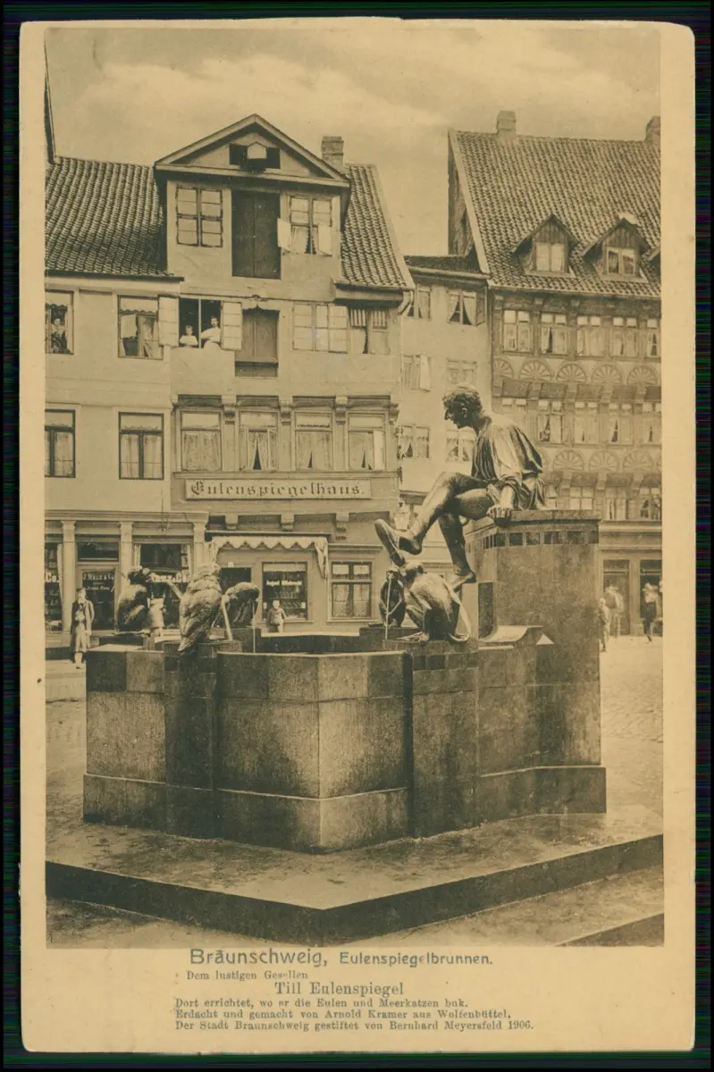 AK Eulenspiegelbrunnen Braunschweig - Denkmal Schelm Till Eulenspiegel 1919 gel.