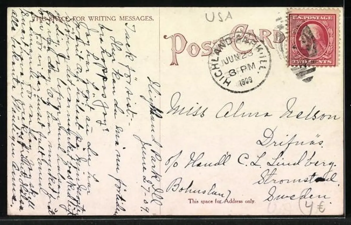 alte Ansichtskarte, gelaufen 1909, Eckknicke rechts, guter Zustand