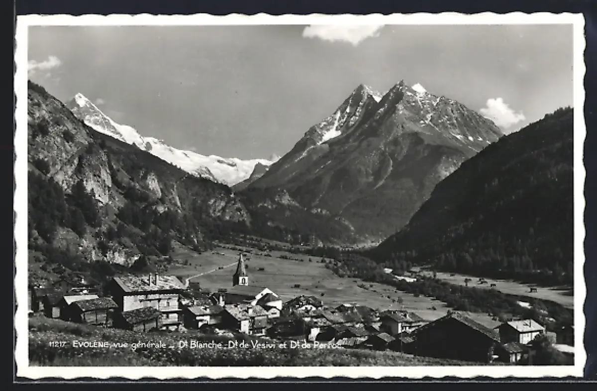 AK Evolène, Vue générale, Dt Blanche, Dt de Vesivi et Dt de Perroc