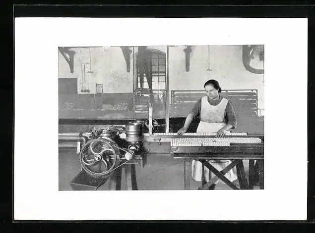 AK Fabrikarbeiterin an ihrer Arbeitsstation, Bildgemeinschaft der Episkopfreunde, Stuttgart, Pfizerstrasse 5 /7, Kuriosa
