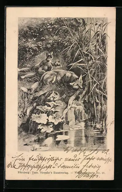 AK Fachsfamilie auf Entenjagd