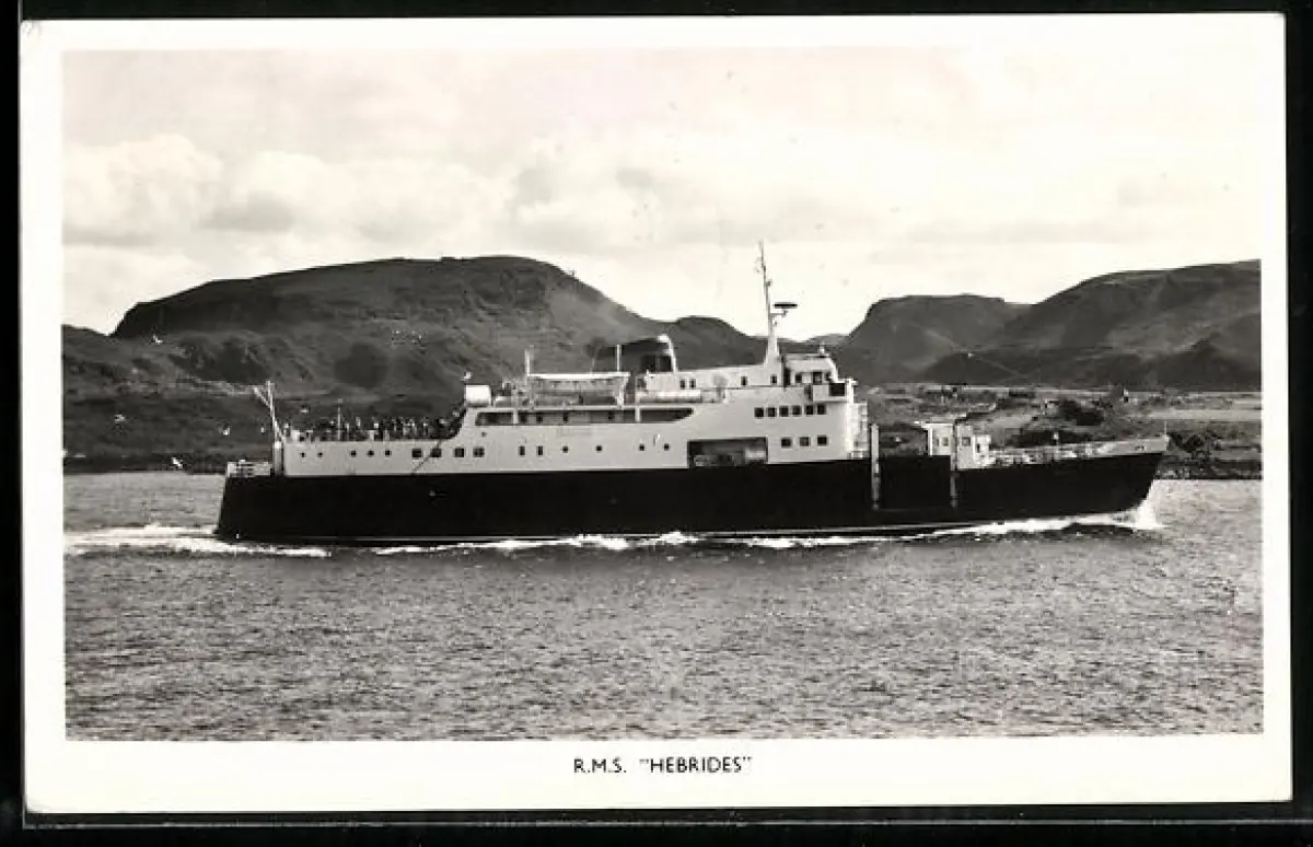 AK Fährschiff R.M.S. Hebrides in Fahrt vor der Küste