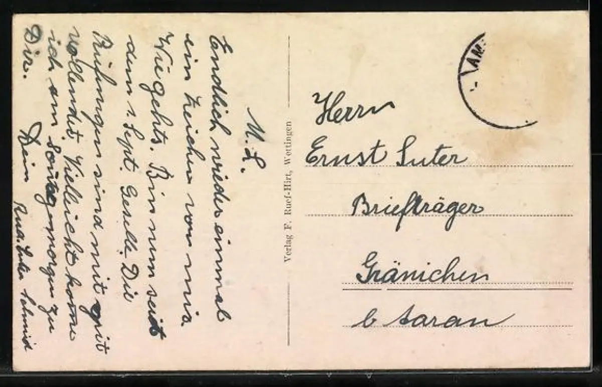alte Ansichtskarte, gelaufen, Briefmarke entfernt, guter Zustand
