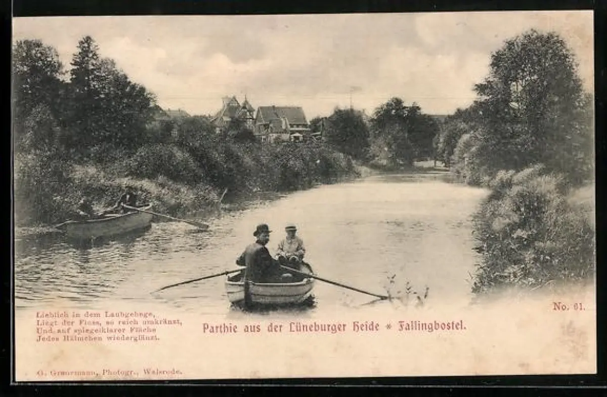 AK Fallingbostel /Lüneburger Heide, Ruderboote auf einem Fluss