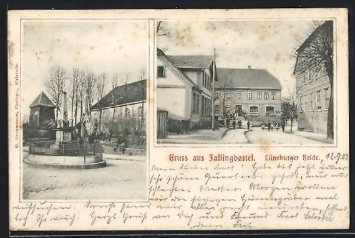 AK Fallingbostel, Strassenpartie, Monument