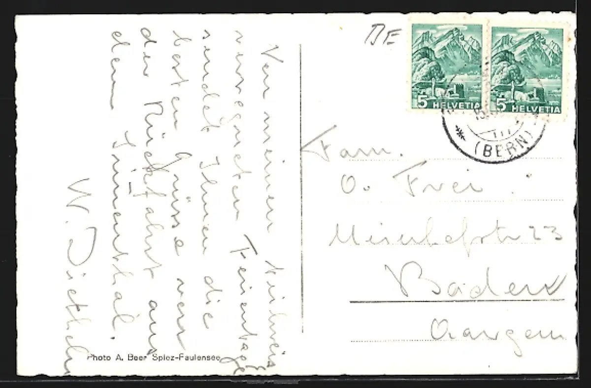 AK Faulensee /Bern, Ortsansicht mit Seepartie und Gipfelpanorama