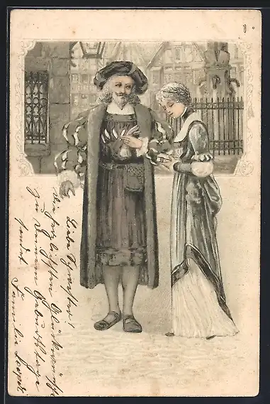 AK Faust, Margarete mit Faust in der Ortschaft