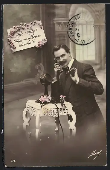 AK Feiner Herr mit Telefon