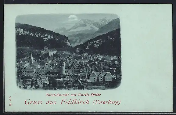 AK Feldkirch, Ortsansicht mit Gurtis-Spitze