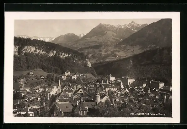 AK Feldkirch, Teilansicht mit Bergpanorama