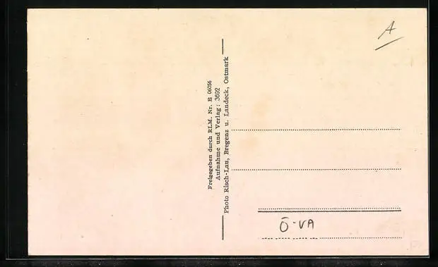 Personenbezogene Daten auf der Rückseite der Karte wurden durch blauen Textmarker unkenntlich gemacht. Die blauen Stellen sind auf die Vorderseite durchgeweicht und wirken sich negativ auf das Postkartenfoto aus