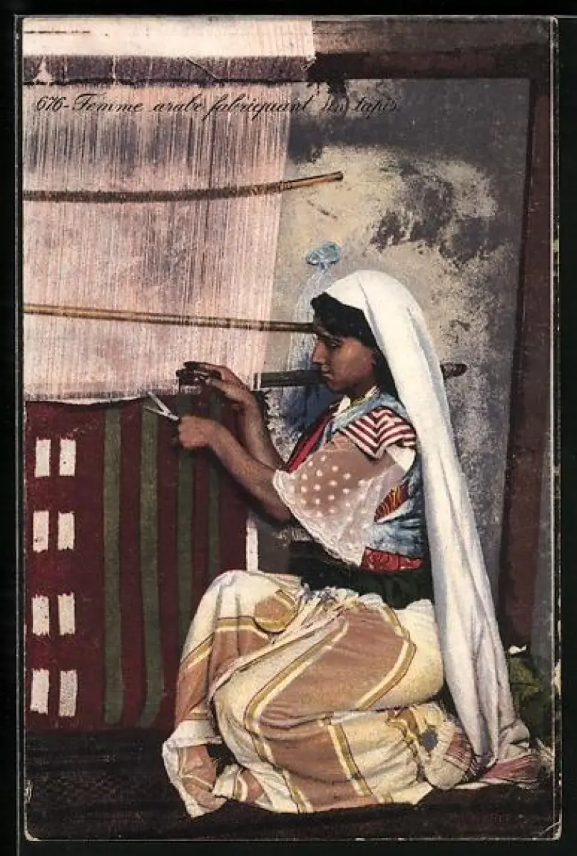 AK Femme arabe fabriquant un tapis, Arabische Teppichweberin