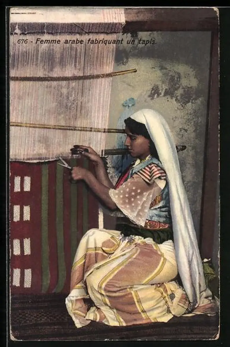 AK Femme arabe fabriquant un tapis, arabische Teppichweberin bei der Arbeit