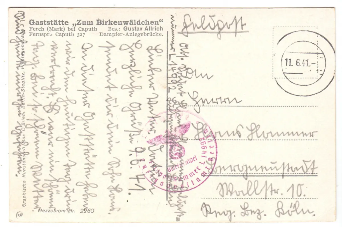 postalisch gelaufen, gestempelt: 11.6.41