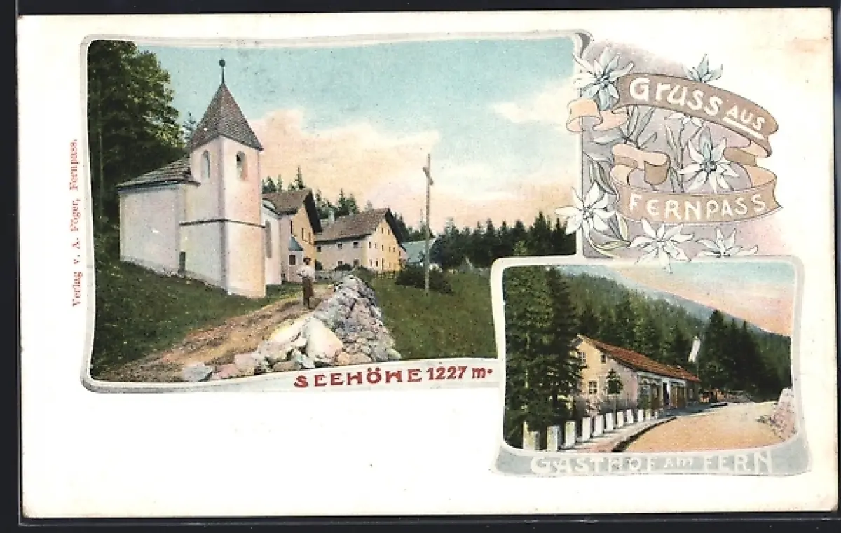 AK Fernpass, Gasthof am Fern, Bes. Luis Föger, Kirche
