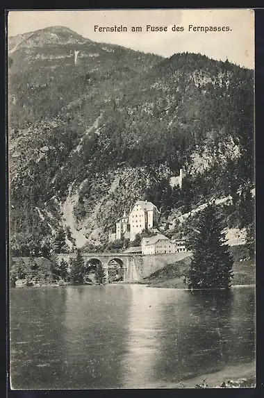 AK Fernstein a. Fernpass, Ortsansicht mit Brücke
