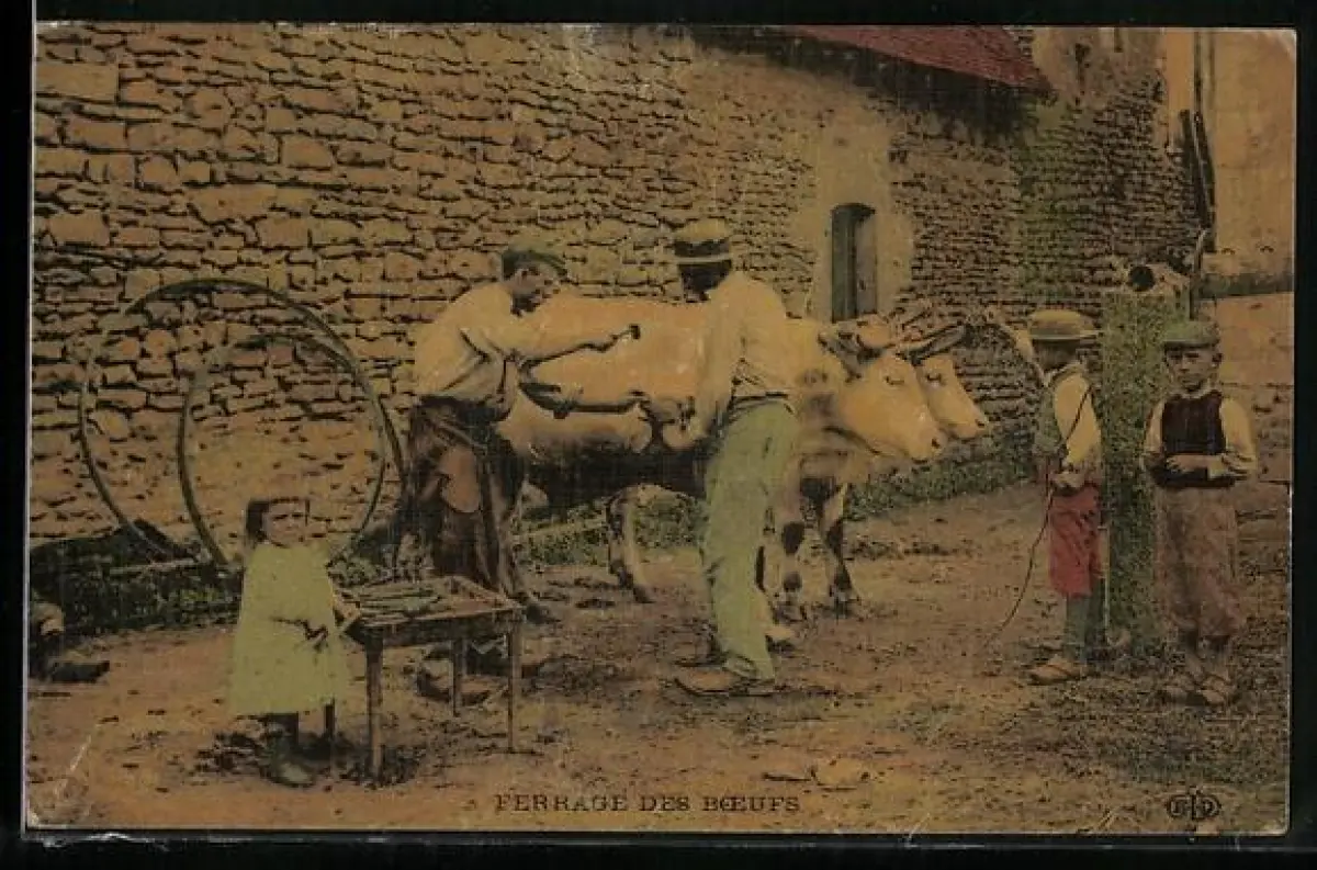 AK Ferrage des Boefs, Schmied mit Ochsen