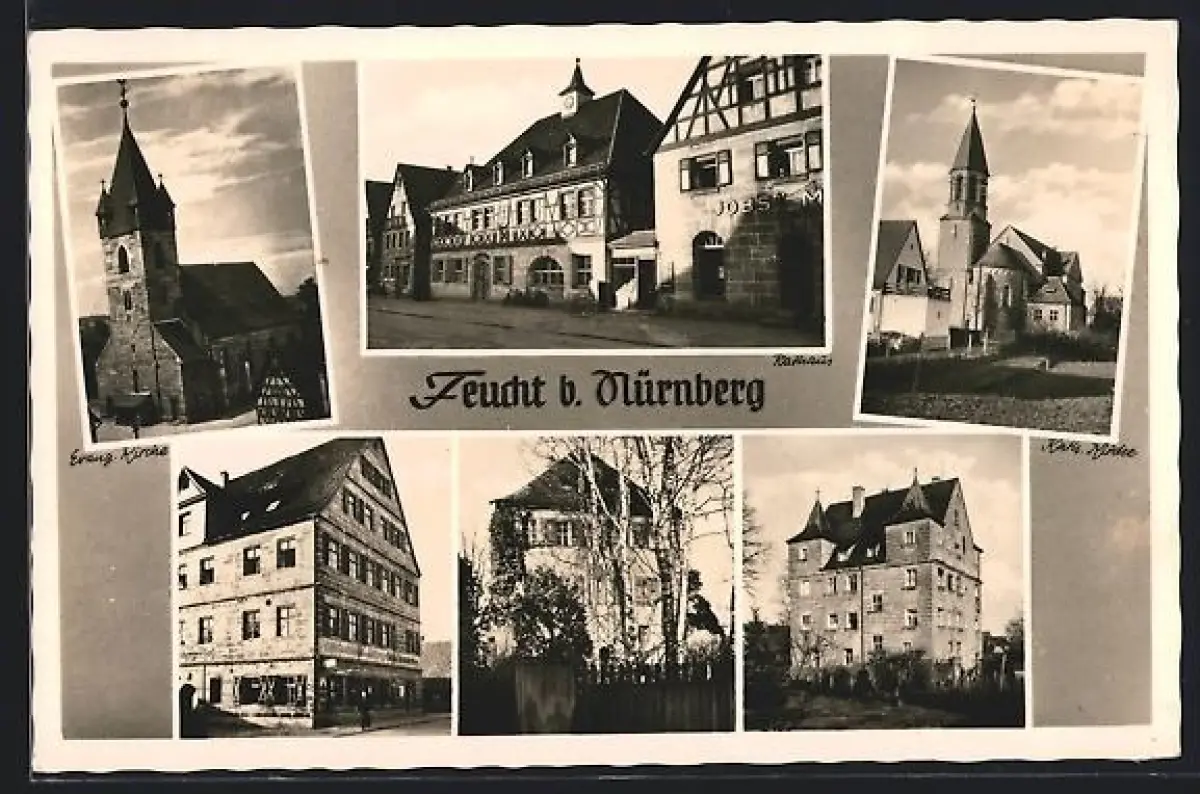 AK Feucht b. Nürnberg, Rathaus, Evang. Kirche, Kath. Kirche