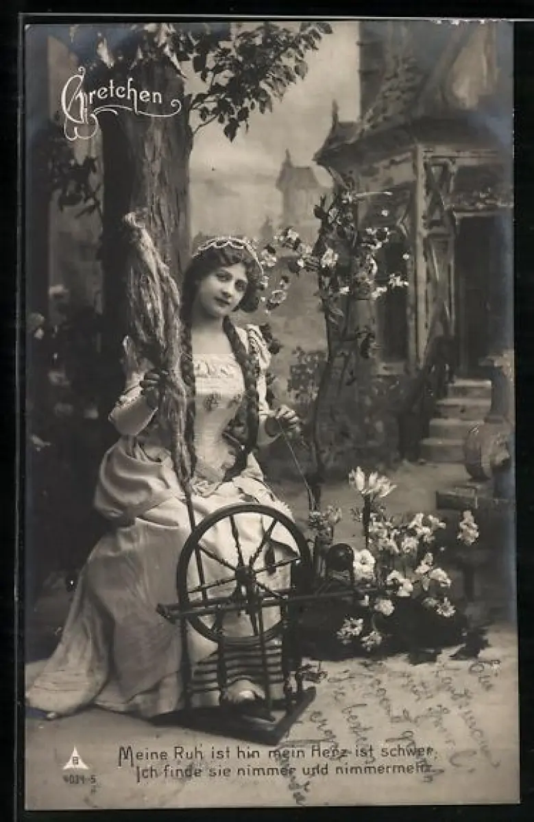 AK Figur der Gretchen aus Goethe`s Faust am Spinnrad