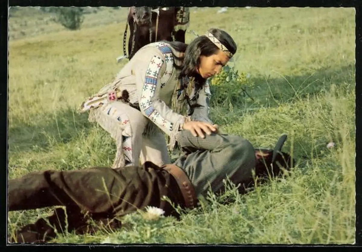 AK Film Unter Geiern, Apachenhäuptling Winnetou, Schauspieler Pierre Brice