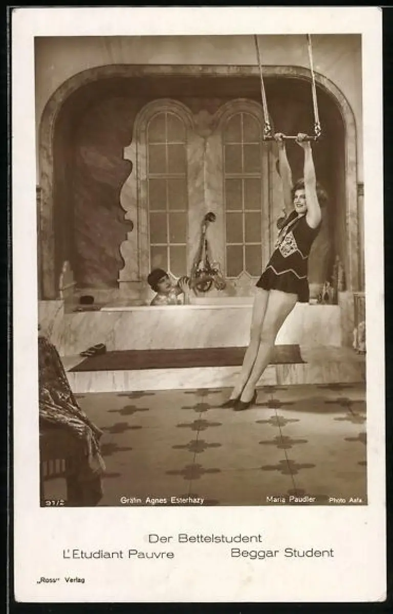 AK Filmszene Der Bettelstudent, Gräfin Agnes Esterhazy, Maria Paudler, Badezimmer
