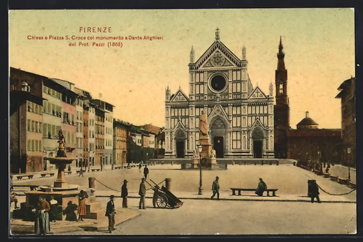 AK Firenze, Chiesa e Piazza S. Croce col monumento a Dante Alighieri