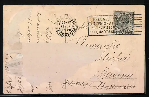 gelaufen 1920, rückseitig Klebe- und Papierreste, guter Zustand