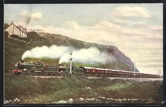 AK Fishguard, Cunard Special leaving, englische Eisenbahn