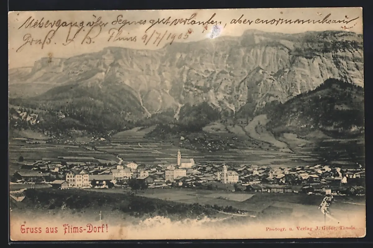 AK Flims, Ortsansicht aus der Vogelschau