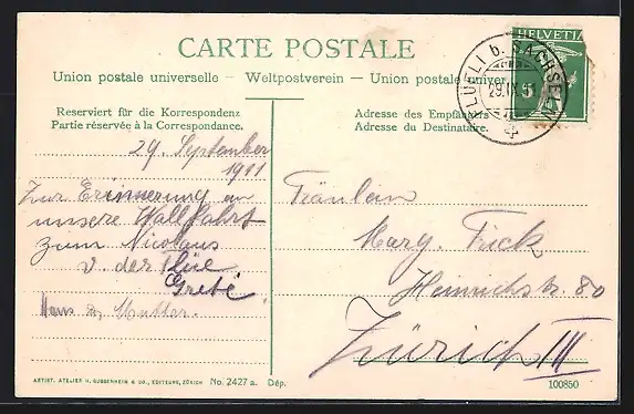 alte Ansichtskarte, gelaufen 1911, guter Zustand