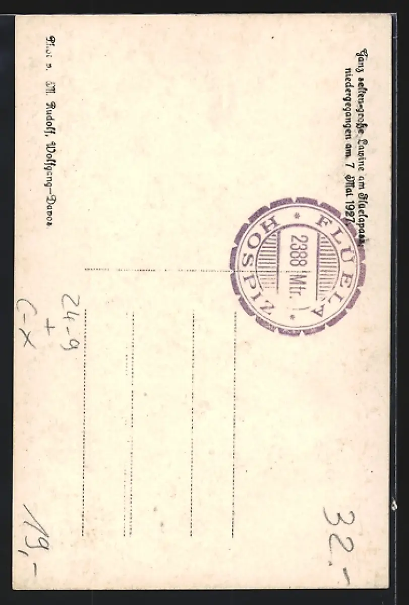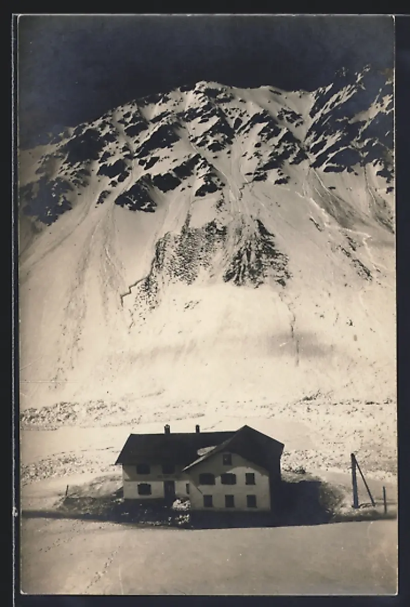 AK Flüelapass, Grosse Lawine am Hotel Hospiz Flüela 1927
