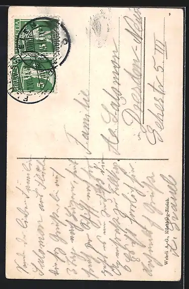 gelaufen 1914, Eckknick unten li., Bugspur unten, guter Zustand
