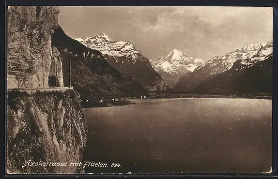 AK Flüelen, Totalansicht von der fernen Axenstrasse