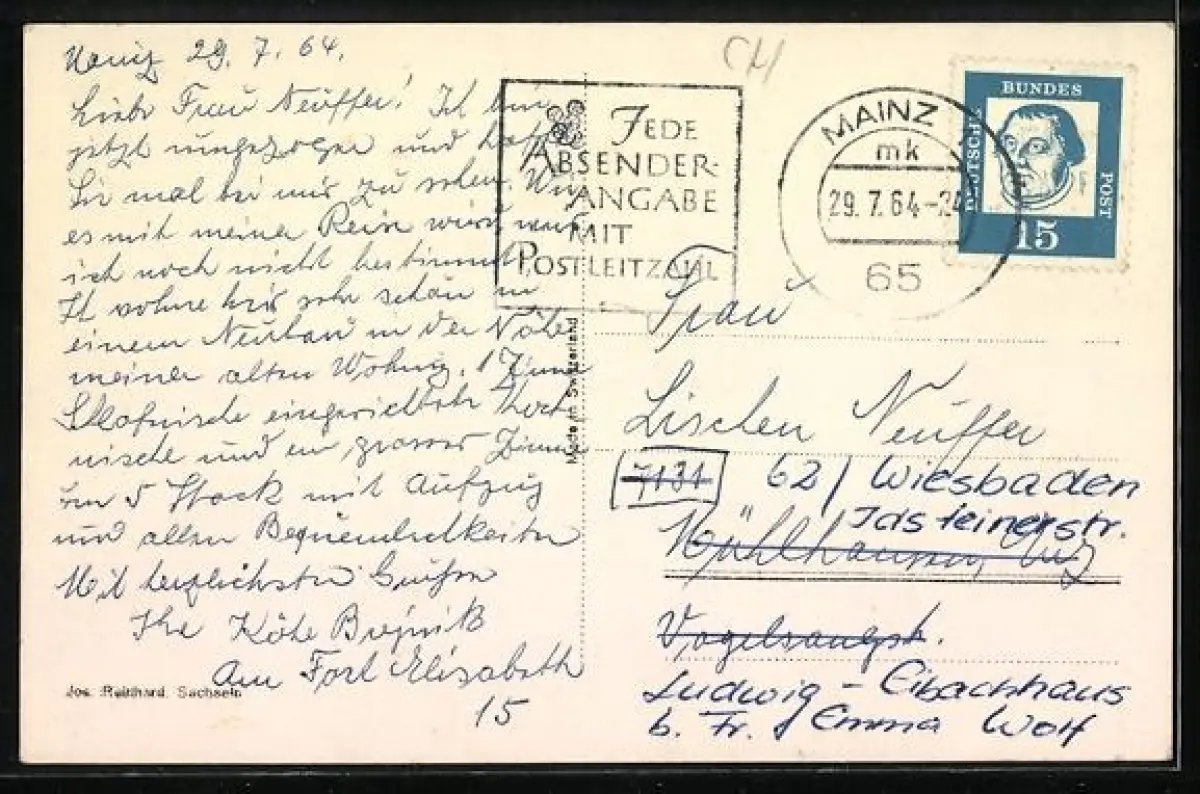 alte Ansichtskarte, gelaufen 1964, guter Zustand