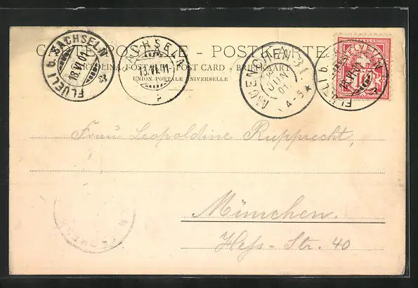alte Ansichtskarte, gelaufen 1901, Stempelspur, guter Zustand