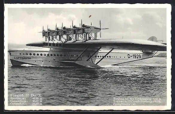 AK Flugschiff DO. X. D-1929 der Lufthansa auf dem See
