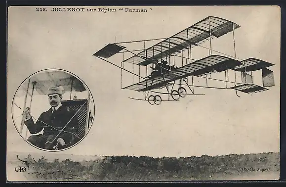 AK Flugzeug Biplan Farman, Pilot Jullerot